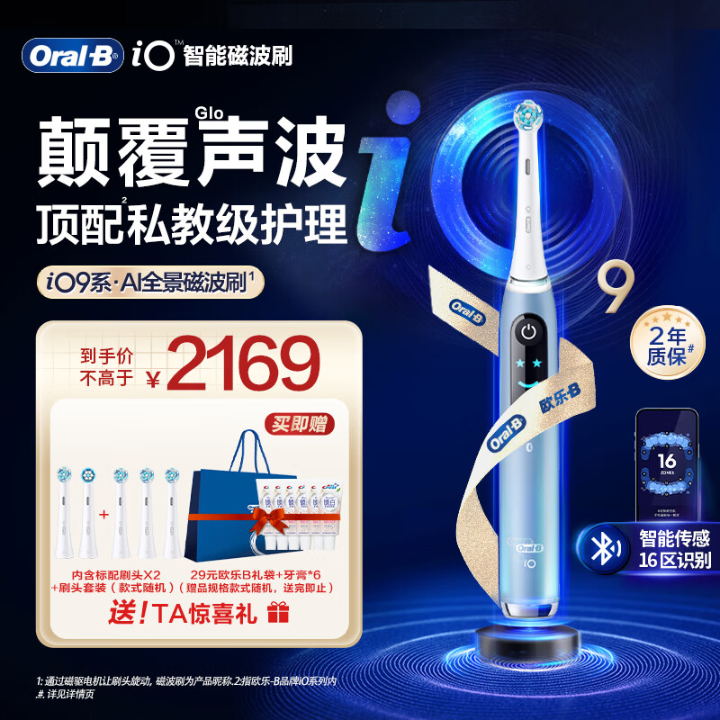 欧乐B成人电动牙刷 iO9 AI全景磁波刷iO系列圆头深度清洁牙龈按摩智能护龈送男友送女友送礼赠生日礼物价格:2169.00元!