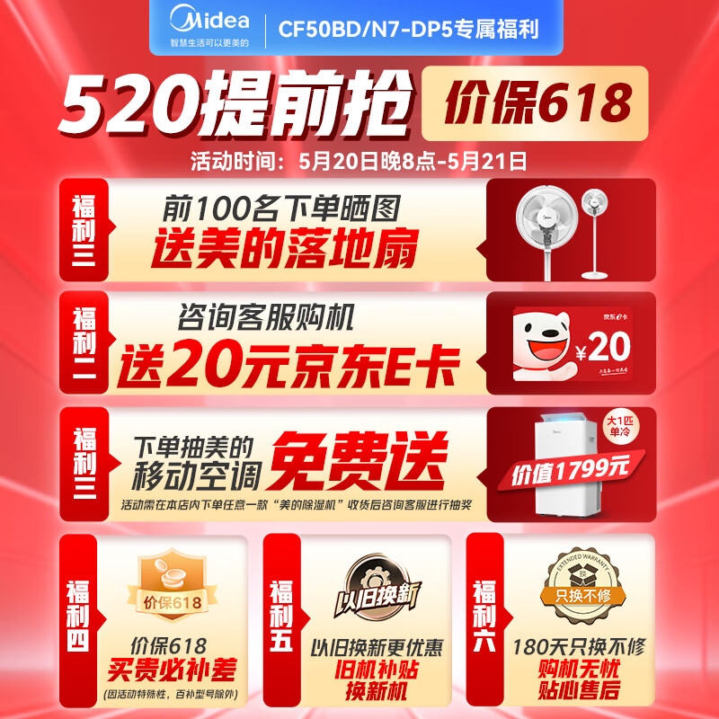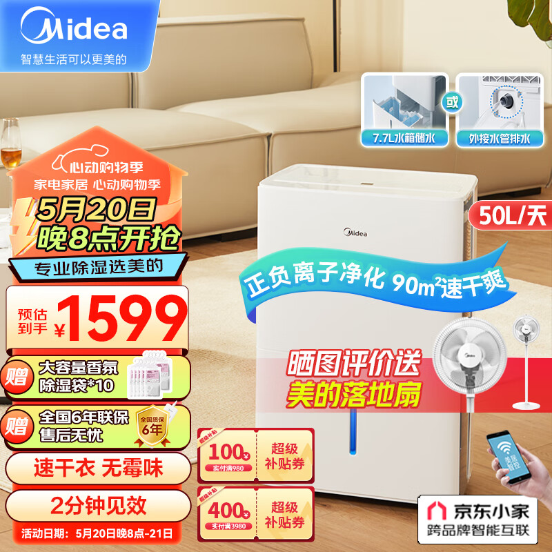 美的(Midea)除湿机/抽湿机 京东小家智能生态 除湿量50升/天 App智控 地下室别墅商用工业吸湿器CF50BD/N7-DP5价格:1899.00元!