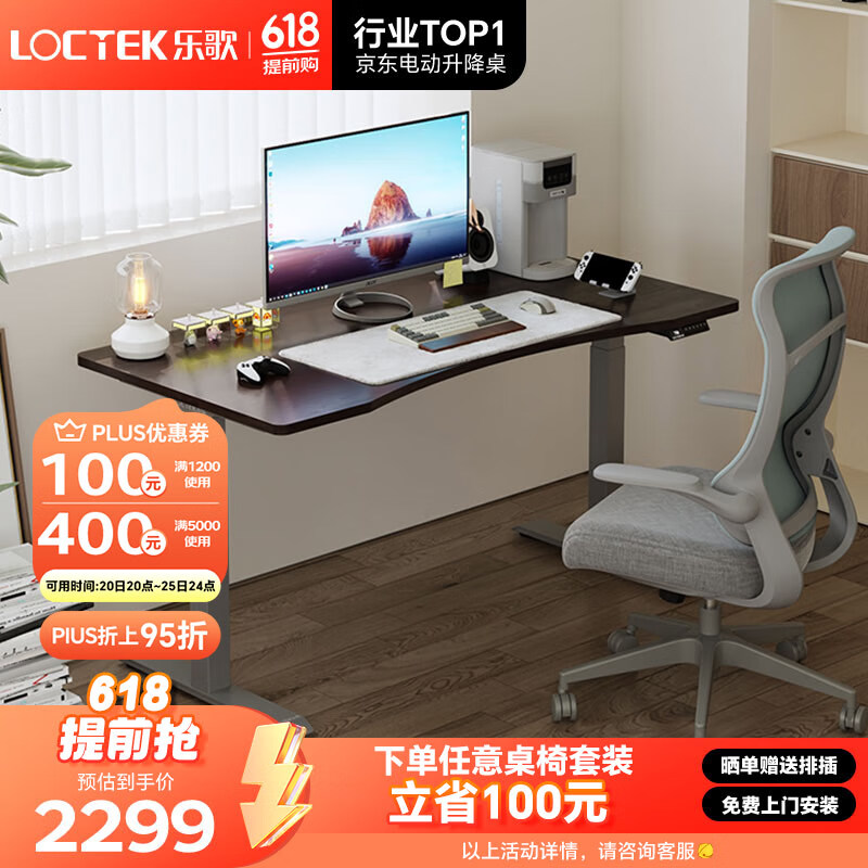 乐歌电动升降桌电脑桌双电机站立办公 E3/1.4m 凹型实木黑胡桃木色价格:2299.00元!