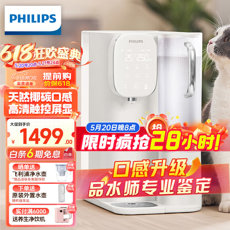 飞利浦(PHILIPS)家用RO反渗透台式即热净饮水机净水器加热直饮一体机免安装净水器6850系列ADD6852价格:1499.00元!