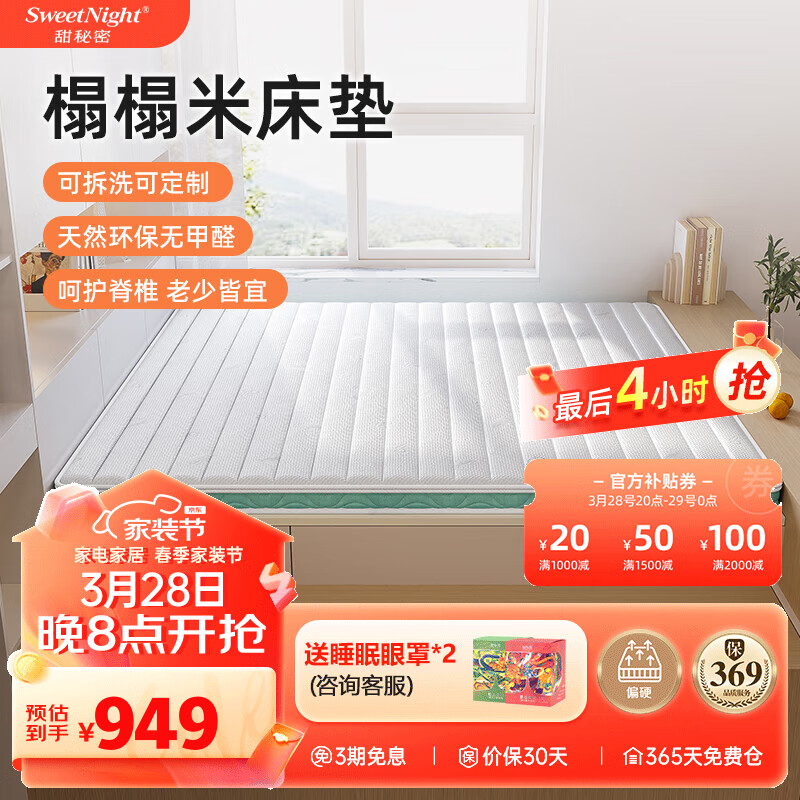Sweetnight榻榻米床垫天然椰棕床垫8cm床垫子 可定制 甜秘密丹左B款 1.2x2米价格:949.00元!