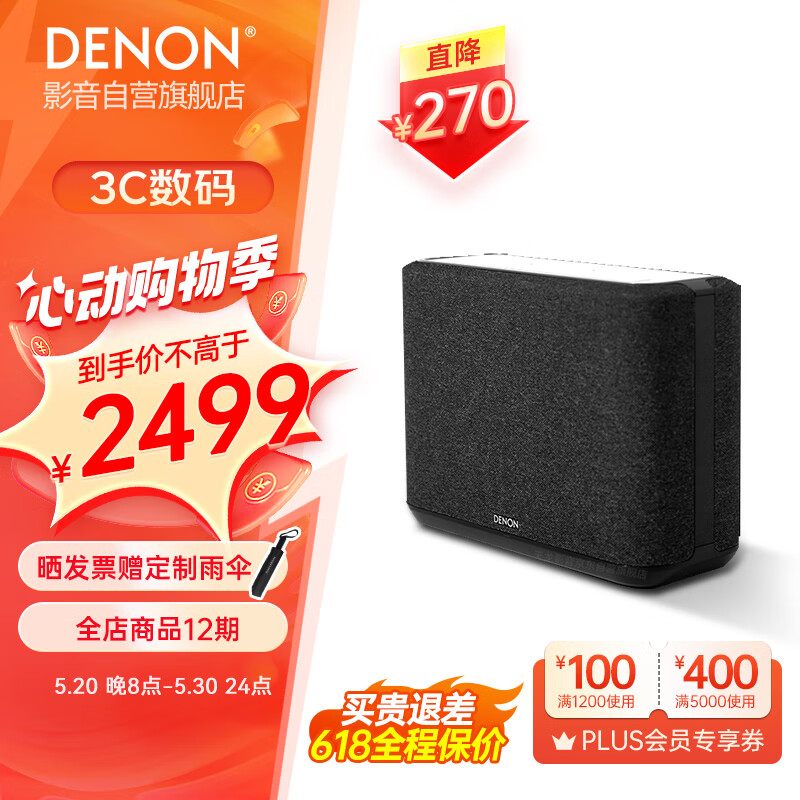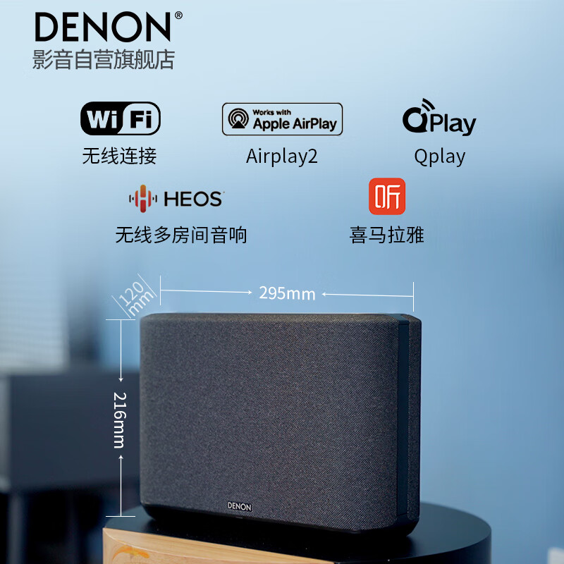 天龙(DENON)HOME 250 无线Hi-Fi音响 桌面迷你音响 WiFi蓝牙USB立体声配对Aux及多房间音乐组合音箱黑色价格:2499.00元!