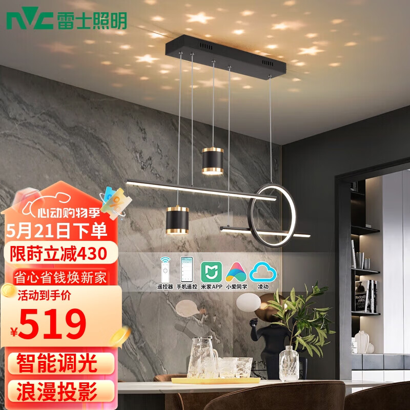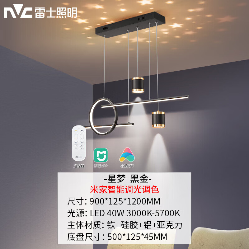 雷士(NVC)餐厅吊灯LED现代简约北欧轻奢黑金餐桌带筒射灯长条WHDD40F/G-03价格:949.00元!