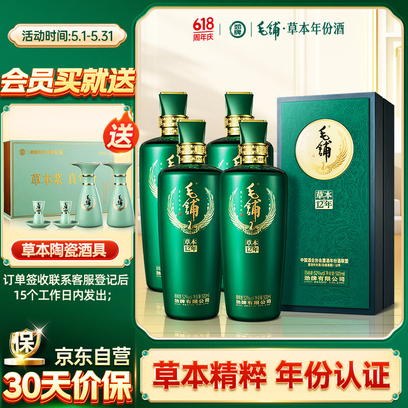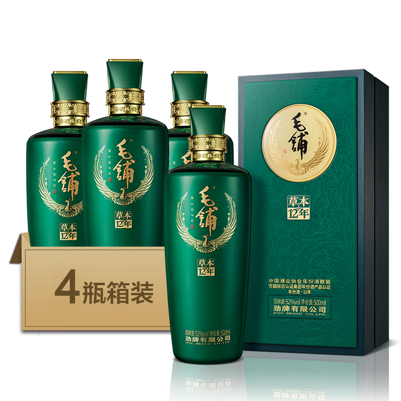 劲牌 毛铺苦荞酒 露酒 草本真年份 高度 12年 52度 500ml*4整箱价格:3029.00元!