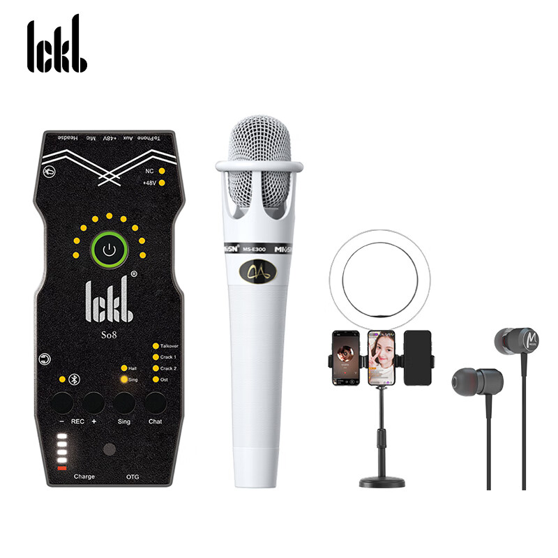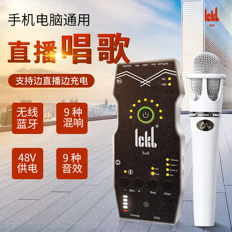 Ickb so8声卡E300白色电容麦克风套装手机直播电脑抖音主播唱K歌录音直播设备全套快手神器话筒价格:1249.00元!