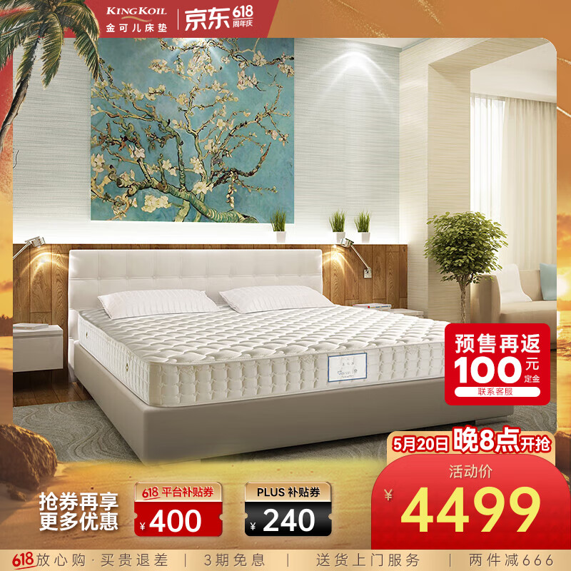 金可儿(Kingkoil)弹簧软床垫席梦思弹簧垫高箱床定制硬床垫圣马洛 1.8米*2米价格:4499.00元!