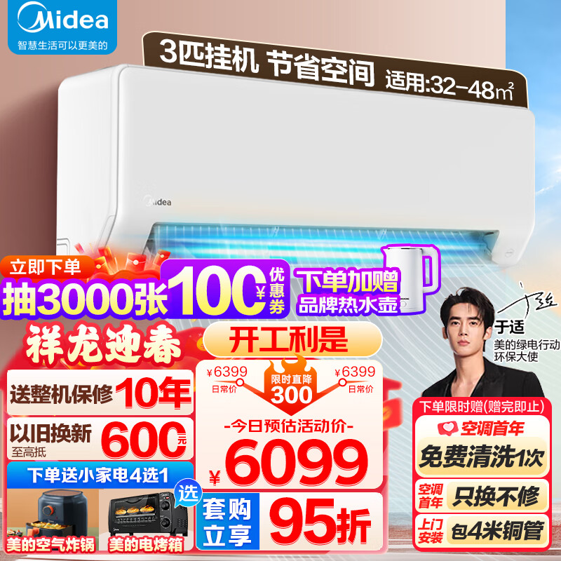 美的(Midea)3匹挂机 新三级能效变频冷暖 大风量自清洁 商铺客厅壁挂式空调挂机 KFR-72GW/G1-3价格:6099.00元!