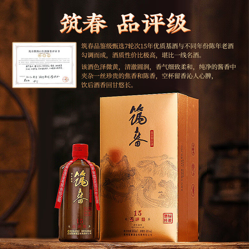 筑春 品评级15 酱香型白酒 53度 500ml*6瓶 整箱装 送礼 贵州老三春价格:5899.00元!