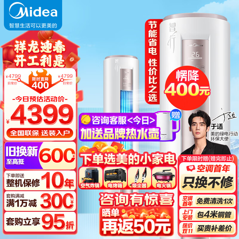 美的(Midea) 智行 2匹 新能效变频冷暖 一键智控温 智能客厅立式空调柜机 KFR-51LW/BDN8Y-YA400(3)A 以旧换新价格:4399.00元!