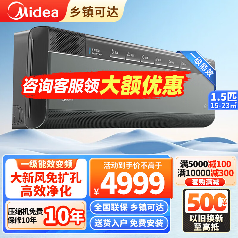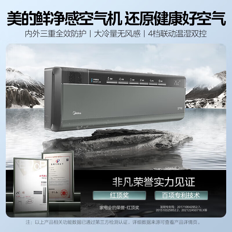 美的(Midea)新风空调1.5匹挂机 t5鲜净感空气机 新一级能效 无风感 壁挂式 卧室空调 KFR-35GW/T5 榭湖银 智选价格:4999.00元!
