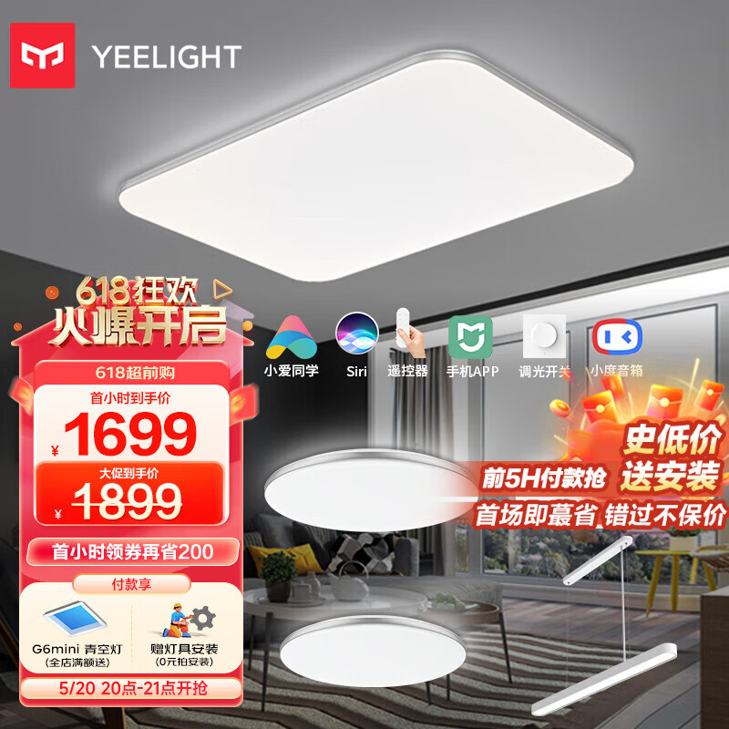 Yeelight易来灵犀led灯吸顶灯 支持米家智能灯具 客厅卧室灯护眼灯3室2厅B价格:2299.00元!
