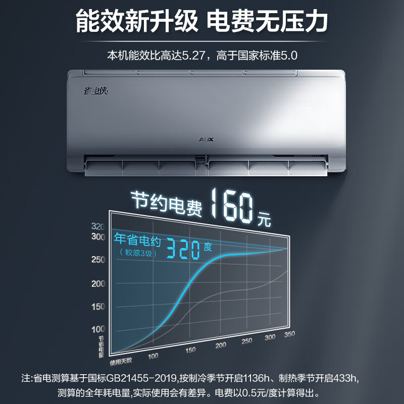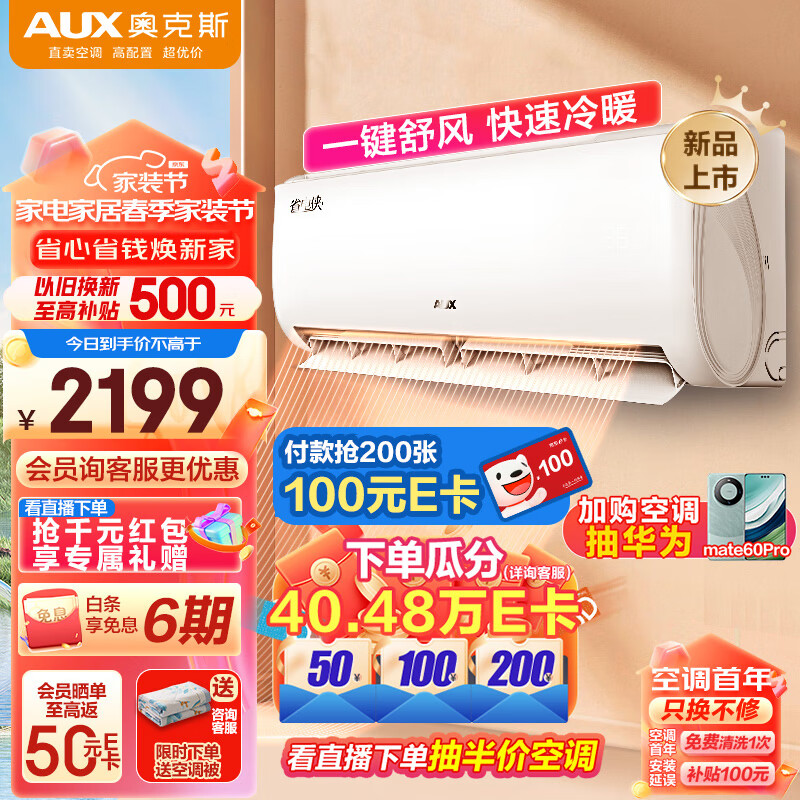 奥克斯1.5匹省电侠空调 新一级能效 家用冷暖壁挂式 快速冷暖KFR-35GW/BpR3AQS1(B1)一键舒风价格:2199.00元!