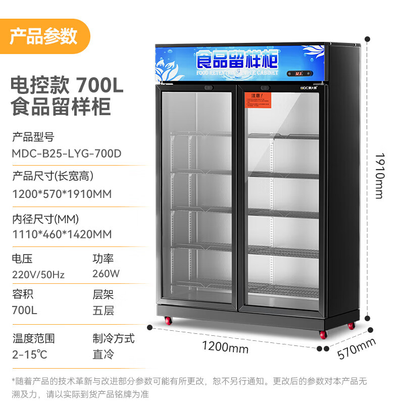 麦大厨商用大容量留样柜公司单位食堂用水果蔬菜菜品留样冰箱保鲜冷藏带锁五层展示柜 MDC-B25-LYG-700D价格:5060.00元!