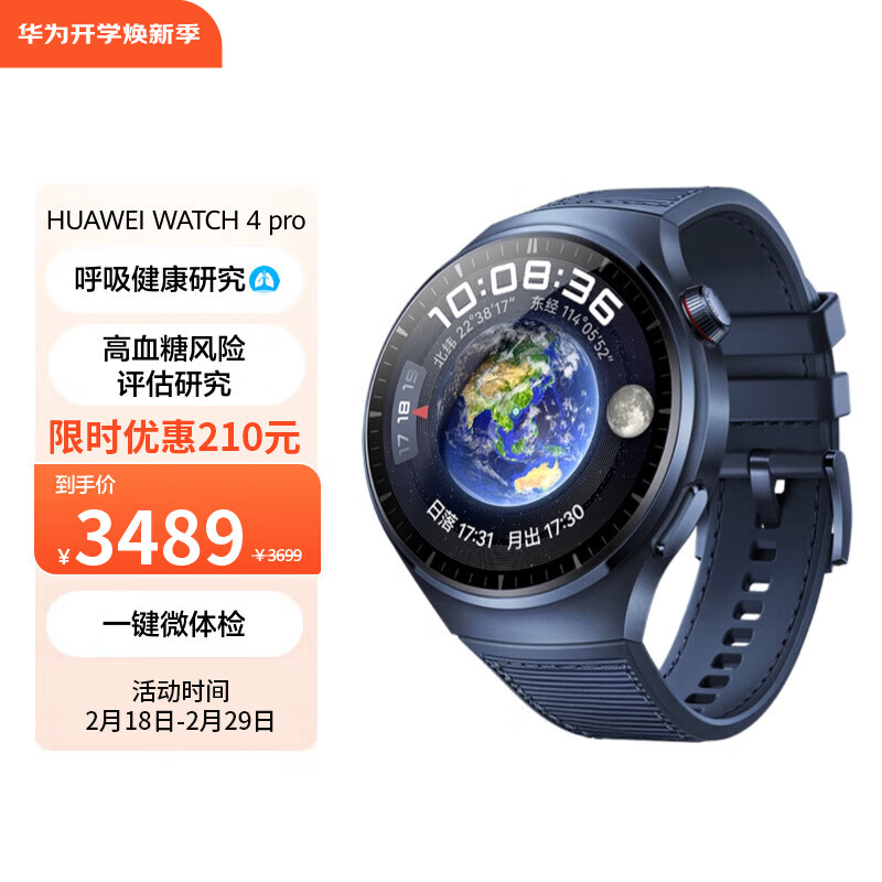 华为(HUAWEI)WATCH 4Pro 蔚蓝地球 48mm eSIM独立通话 高血糖风险评估研究 微信手表版 华为手表 运动智能表价格:3439.00元!