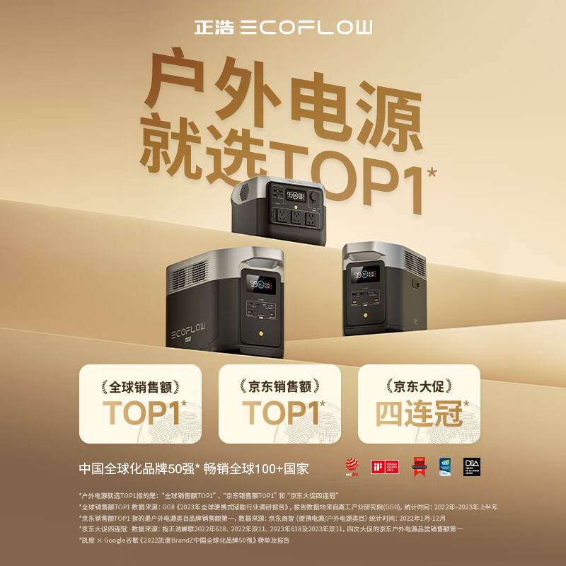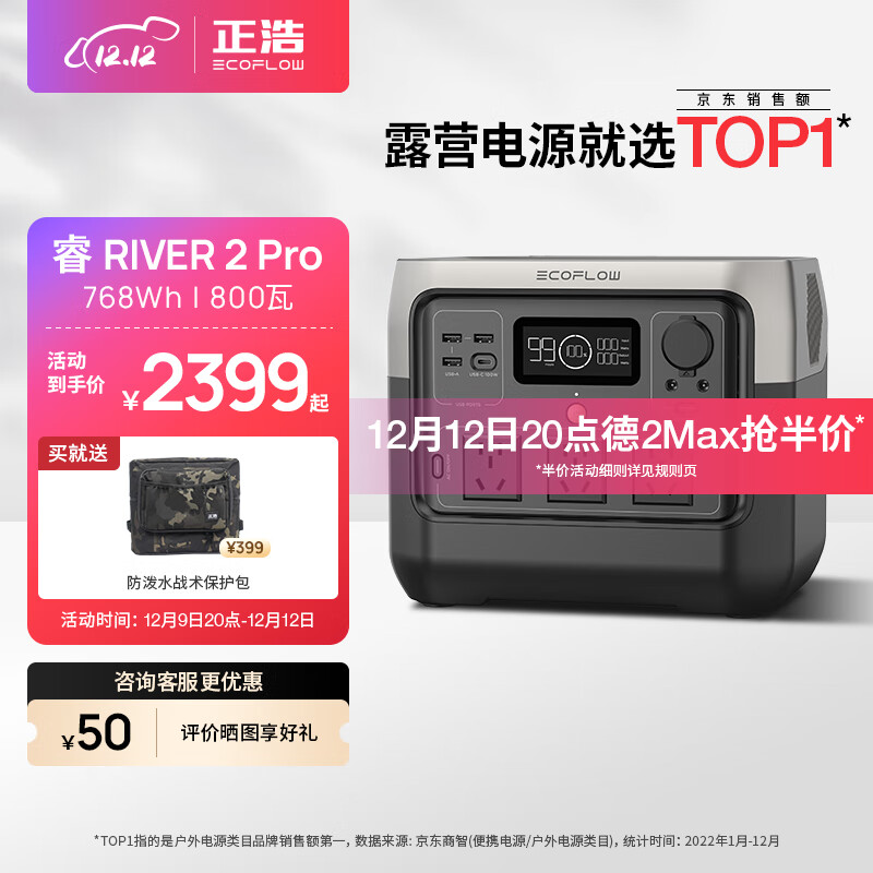 正浩EcoFlow 【70分钟闪充】移动户外电源220V 800W大容量自驾车载露营便携停电应急充电宝768Wh价格:2399.00元!