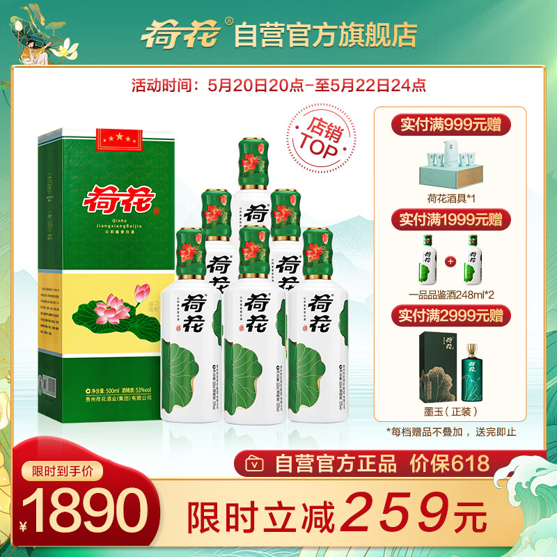 荷花一品荷花 酱香型白酒53度500ml*6瓶 整箱装 大曲坤沙 纯粮酿造价格:2223.60元!