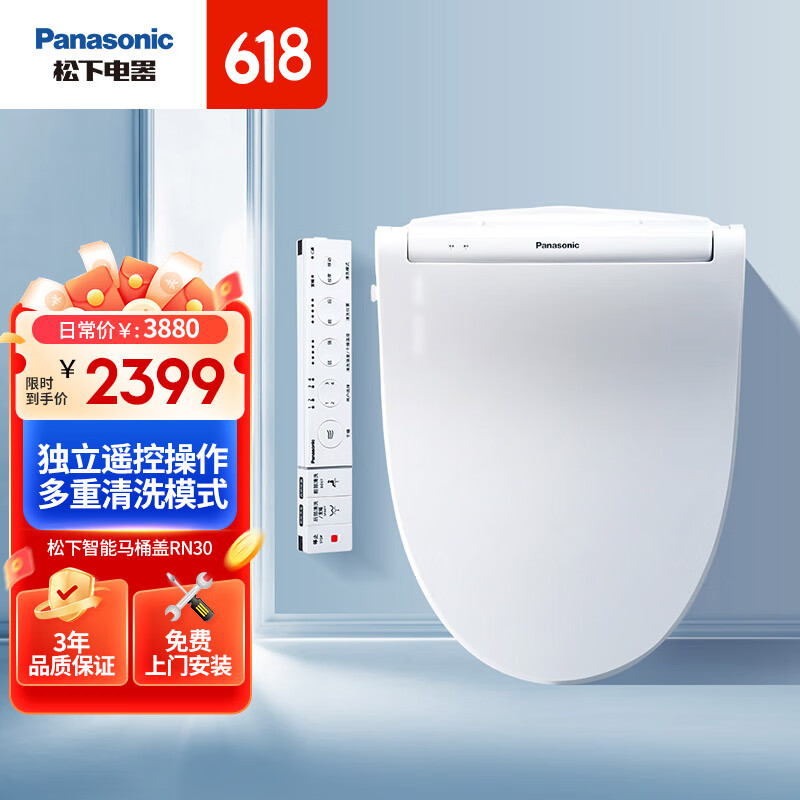松下(Panasonic)智能马桶盖 即热式全功能 无纸化速干 独立遥控器操作DL- RN30CWS价格:2399.00元!