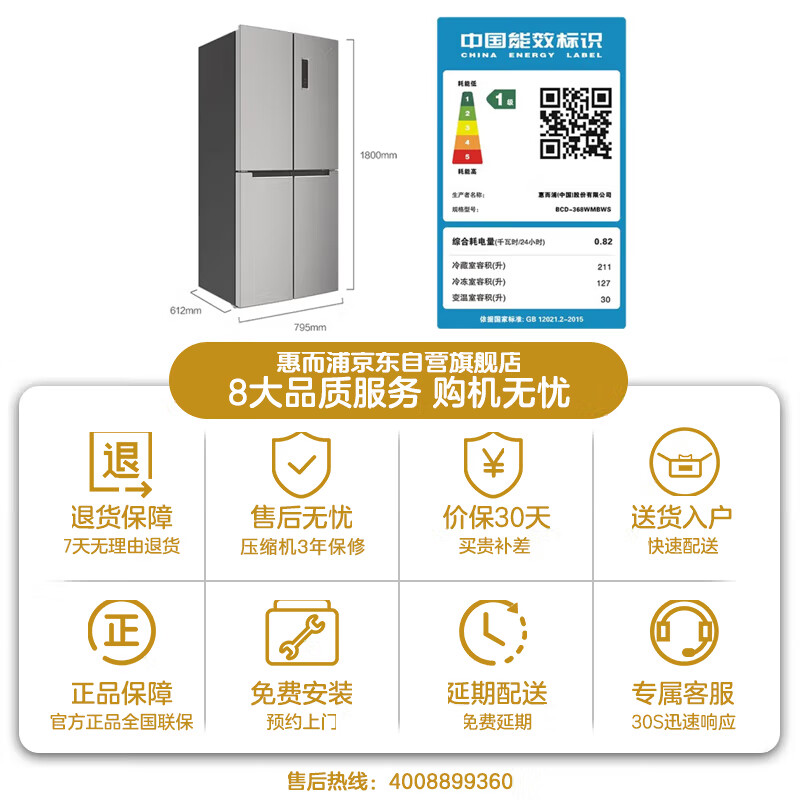 说真的惠而浦BCD-368WMBWS的质量参数,还有这款的开始销售的时间和用户的评价等等,如果你对此款感兴趣的话,不妨一起来瞧一瞧!外形外观:很大,很漂亮,颜色好看制冷效果:很好保鲜效果:还没有用,应该是可以的容量大小:大