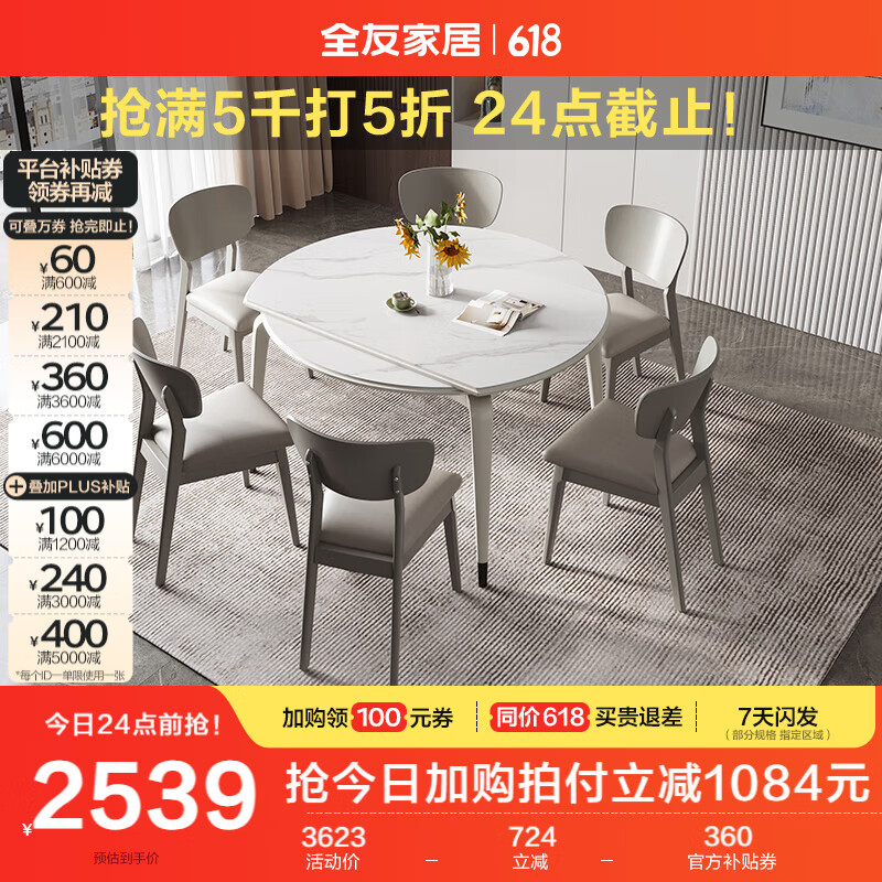 全友家居 餐桌现代简约岩板餐桌可圆可方伸缩功能吃饭桌子家具DW1121价格:3623.75元!