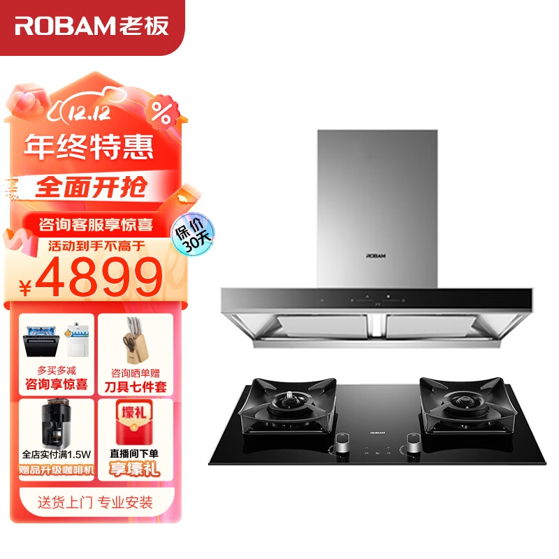 老板(Robam)抽油烟机领航家D1S欧式顶吸双腔变频22大风量家用燃气灶吸油烟机灶具套装60D1S+51B0A(天然气)价格:4899.00元!