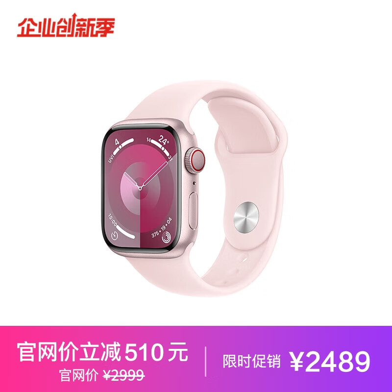 Apple Watch Series?9 (GPS);41?毫米粉色铝金属表壳;亮粉色运动型表带 - S/M MR933CH/A*企业专享价格:2489.00元!
