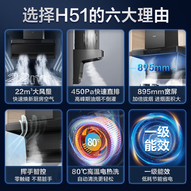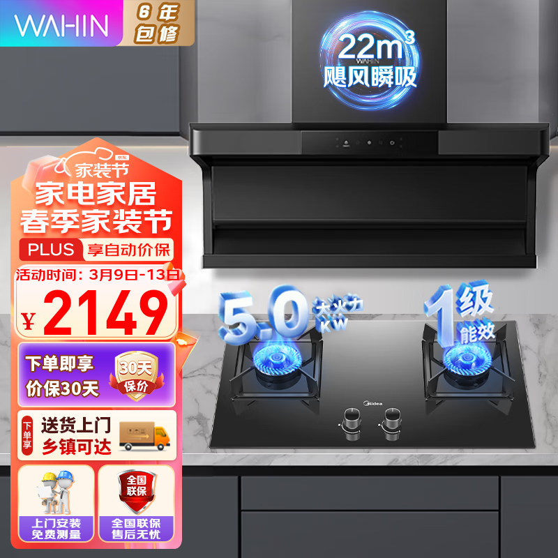 美的(Midea)出品抽油烟机顶侧双吸22立方爆炒大吸力烟灶套装家用吸油烟机高温电热自清洗厨房吸烟机 以旧换新 天然气【烟灶套装】H51搭配5.0KW猛火灶价格:2149.00元!
