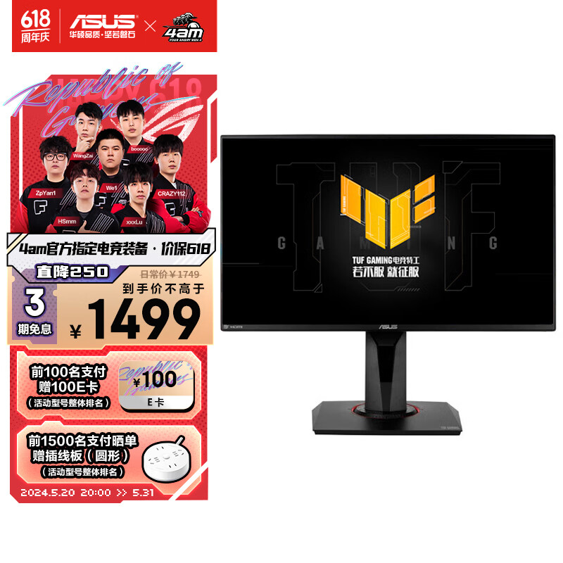 华硕TUF VG259QM战杀25 24.5英寸显示器电竞240Hz显示器超频280Hz FastIPS 1ms响应HDR400旋转升降音响价格:1499.00元!