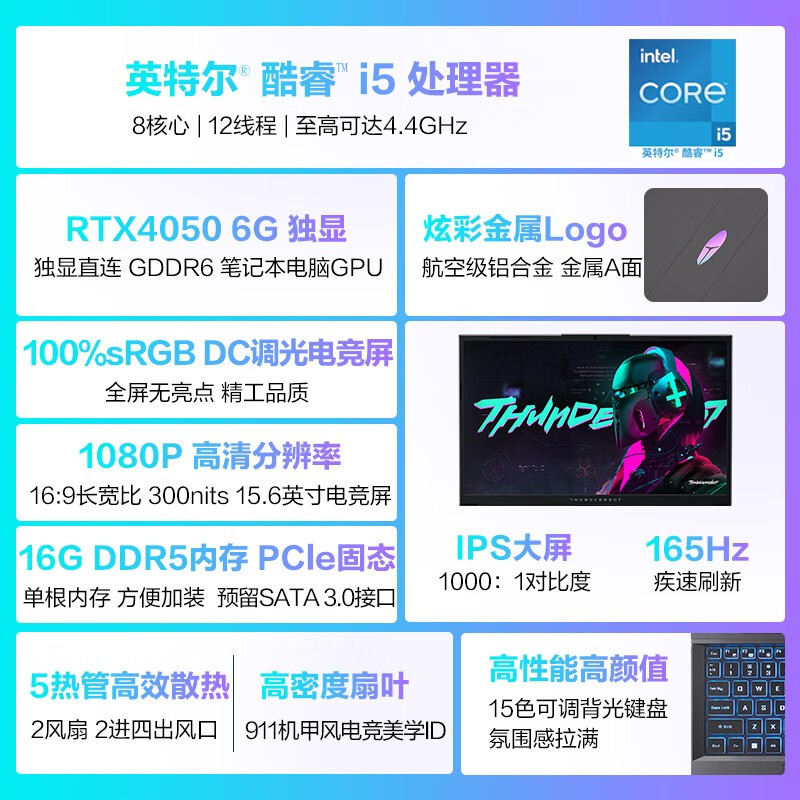 雷神(ThundeRobot)911MT黑武士15.6英寸独显轻薄游戏本骨灰玩家级剪辑AI设计师编程移动工作站笔记本电脑变形金刚IP 酷睿i5|4050|16G|512G原装价格:6999.00元!