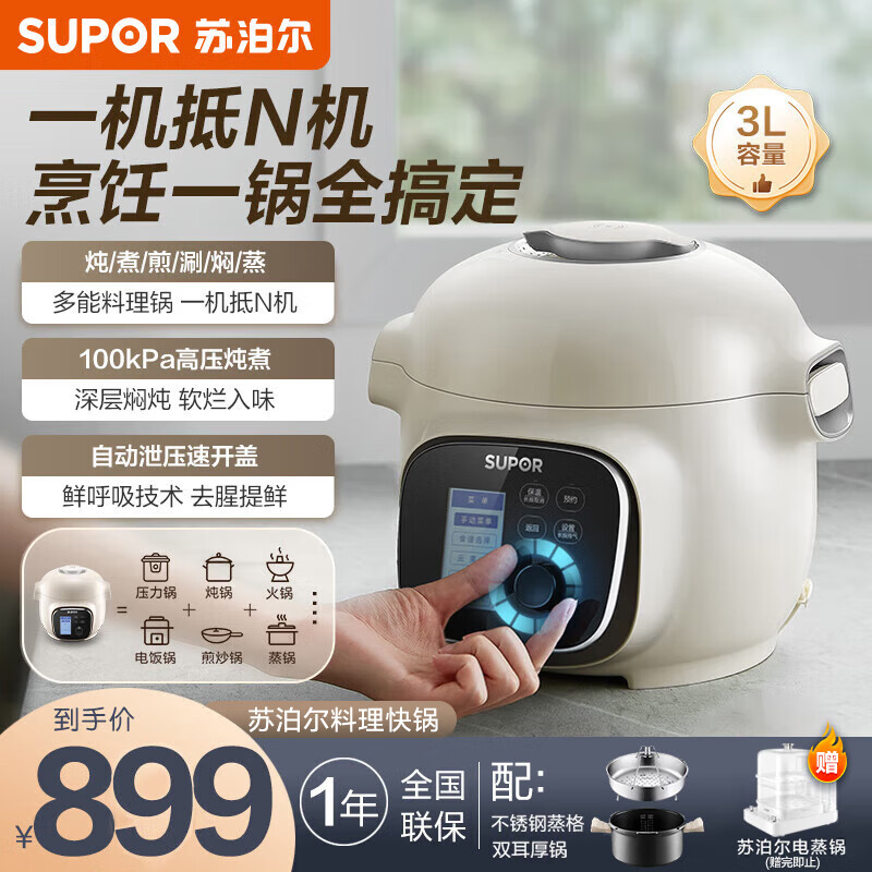 苏泊尔(SUPOR)电锅智能家用多功能自动排气高压锅电饭煲不沾可预约料理快锅电饭锅3L容量SY-30YZ100 3L价格:999.00元!