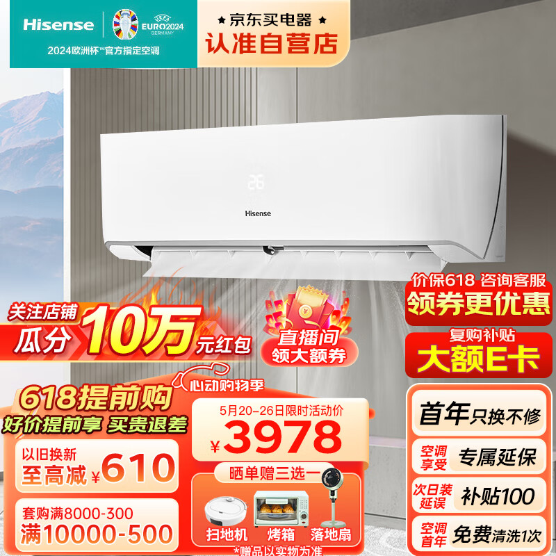 海信(Hisense)空调3匹新一级能效变频快速冷暖WIFI智能自清洁家用壁挂式空调挂机 KFR-72GW/K220D-A1以旧换新价格:3978.00元!