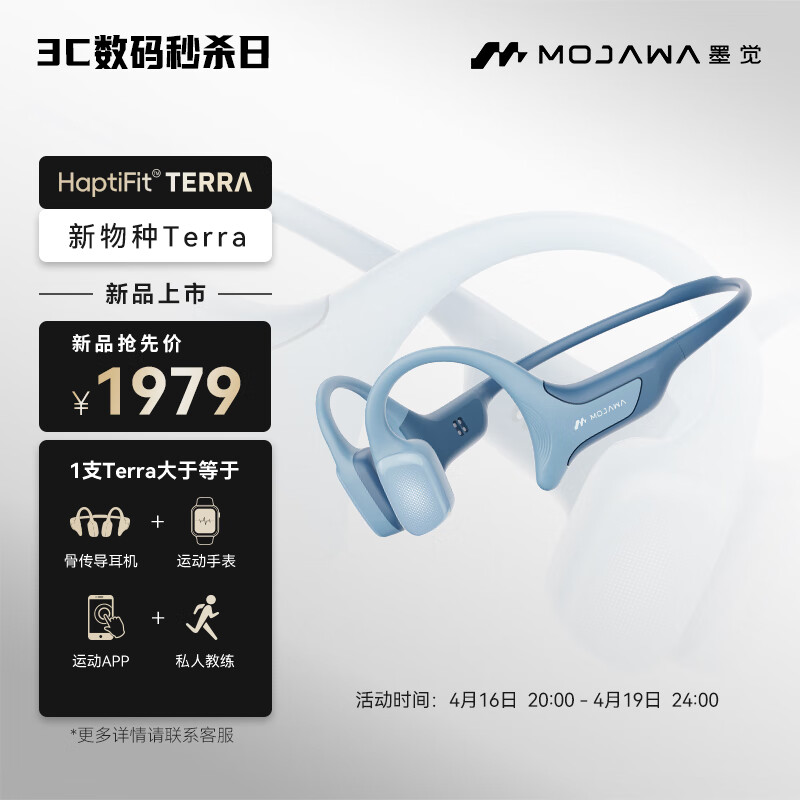 墨觉(MOJAWA)Terra 头戴式智能运动设备耳骨传导蓝牙运动耳机无线跑步骑行游泳8级防水32G内存 浅蓝色价格:2199.00元!