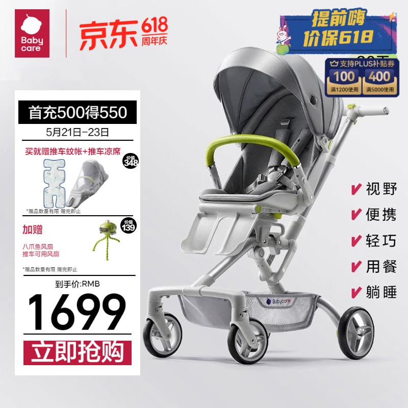 babycare头等舱婴儿推车高景观遛娃神器轻便可折叠可坐躺双向溜娃 冰霜银价格:1699.00元!