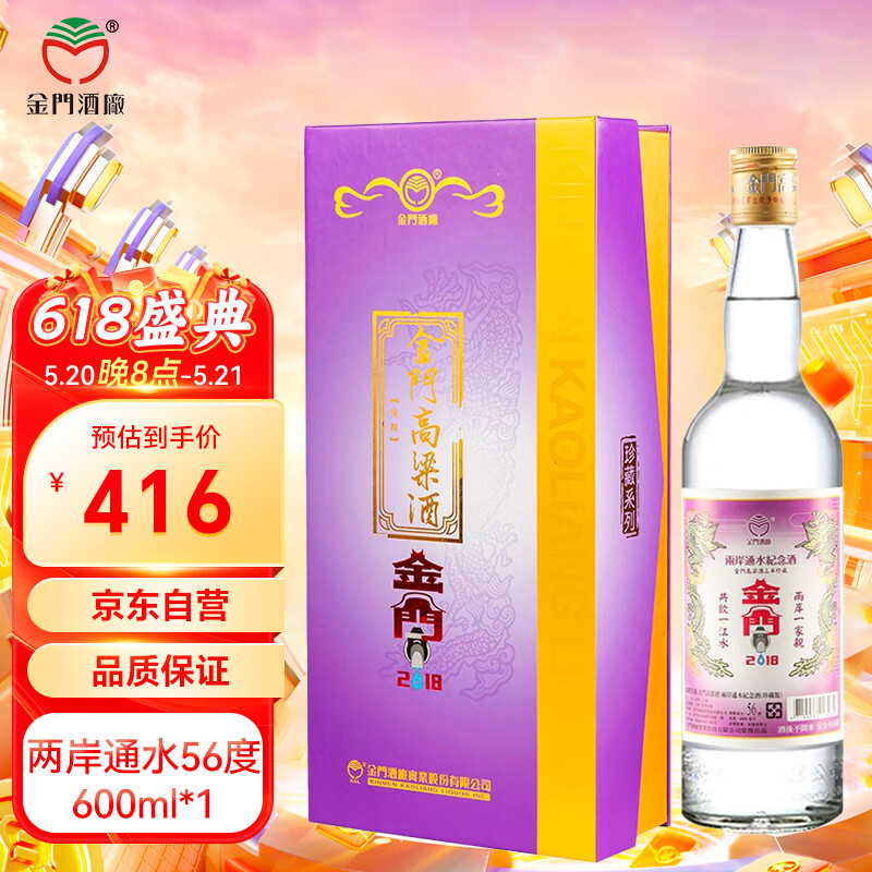 金门高粱 2018年老酒两岸通水纪念酒 清香型白酒 56度 600ml 礼盒装价格:438.00元!