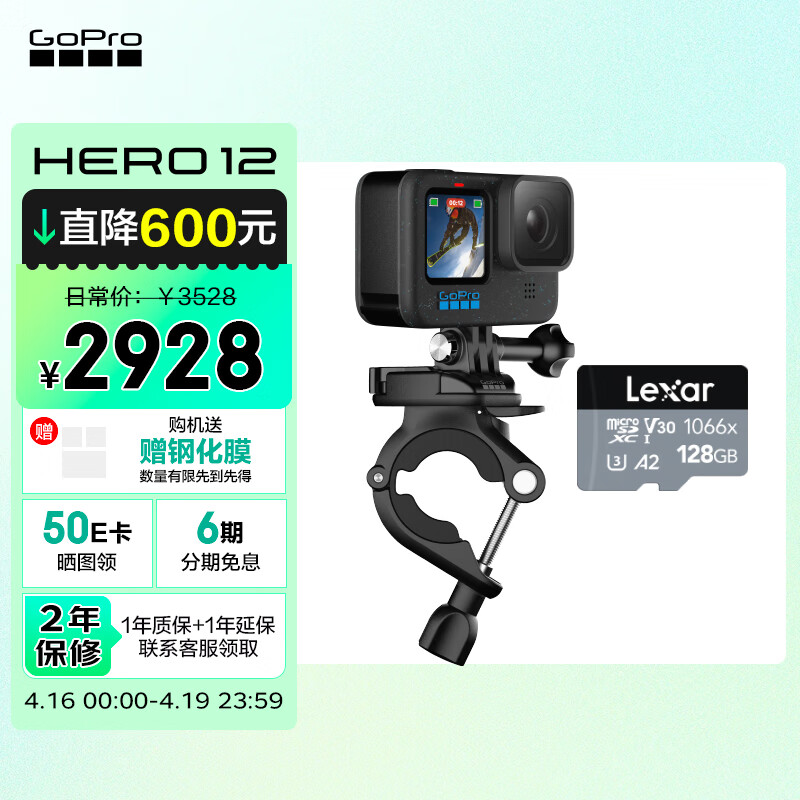 GOPRO HERO12 Black防抖运动相机 摩托车骑行运动摄像机 潜水水下相机 自行车记录仪 骑行套装 HERO 12 Black价格:2928.00元!