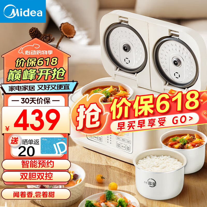 美的(Midea)电饭煲 双胆双控智能预约白玉晶釜内胆家用商用小型 一体家用迷你电饭锅 3-4-8人用 双子座电饭煲 3.2L价格:799.00元!
