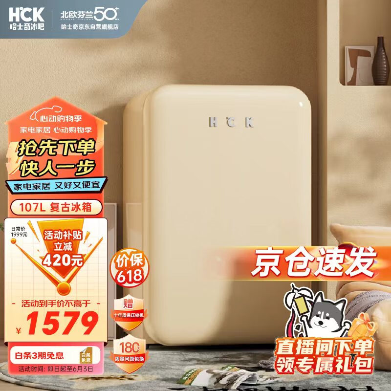 哈士奇客厅冰箱家用租房小型家用单门复古冷冻冷藏节能母婴冰箱储奶 小吐司 107升 BC-130RDC浅黄色价格:1679.00元!