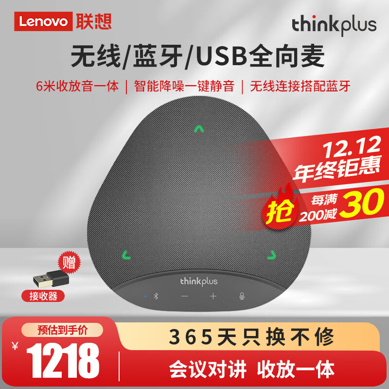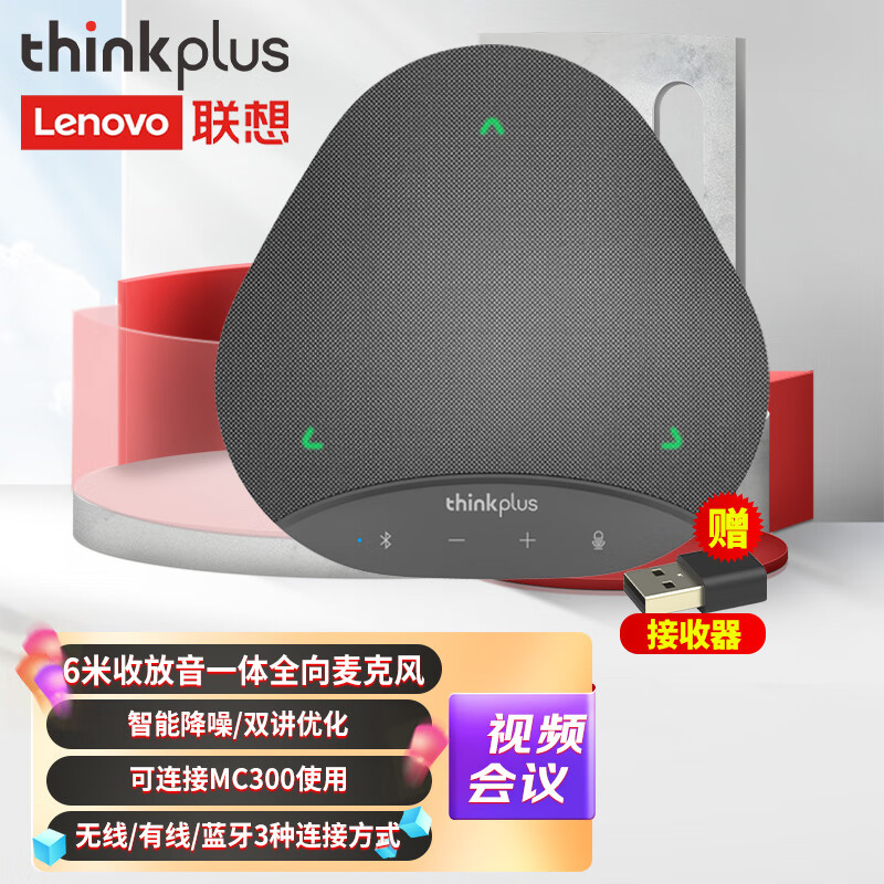 联想thinkplus视频会议全向麦克风/无线蓝牙/桌面扬声器音响(适用50平米以内会议室)6米拾音降噪音箱MK-MC500价格:1398.00元!