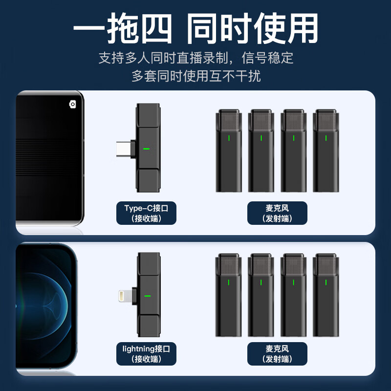 索爱 MK20无线领夹麦克风viog录音声卡收音器小蜜蜂户外直播采访短视频降噪话筒【一拖四】Type-C版价格:1499.00元!