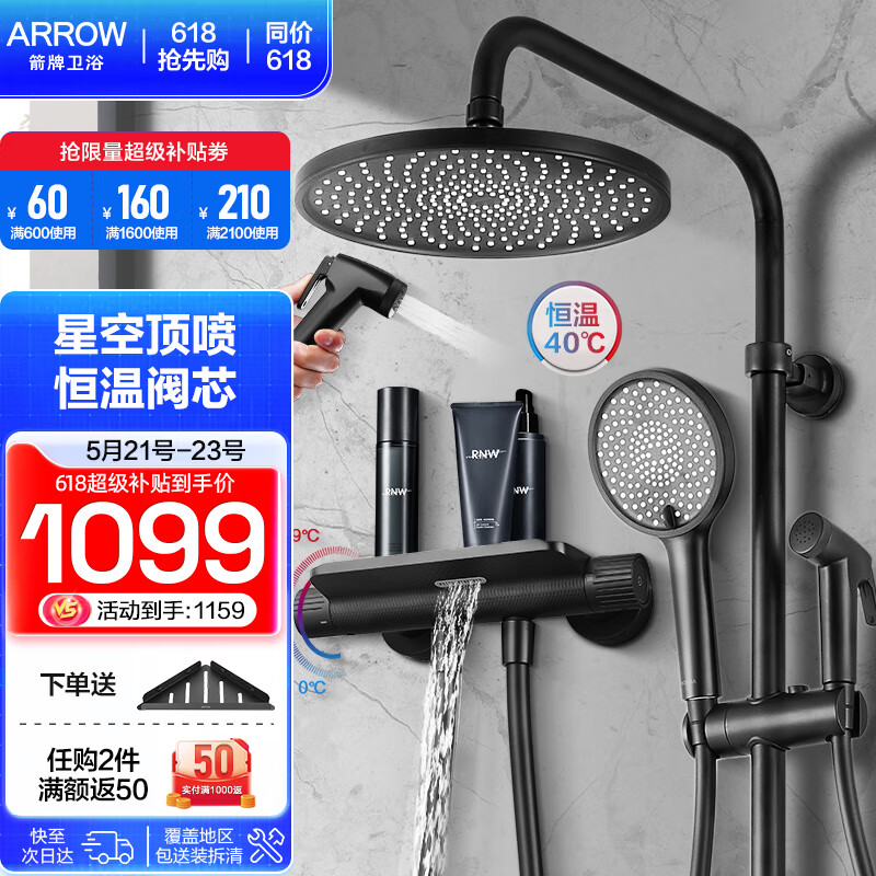 箭牌(ARROW)恒温花洒套装冷热家用卫生间挂墙式淋浴增压喷头套装 星空顶恒温花洒34120HMB价格:1410.00元!