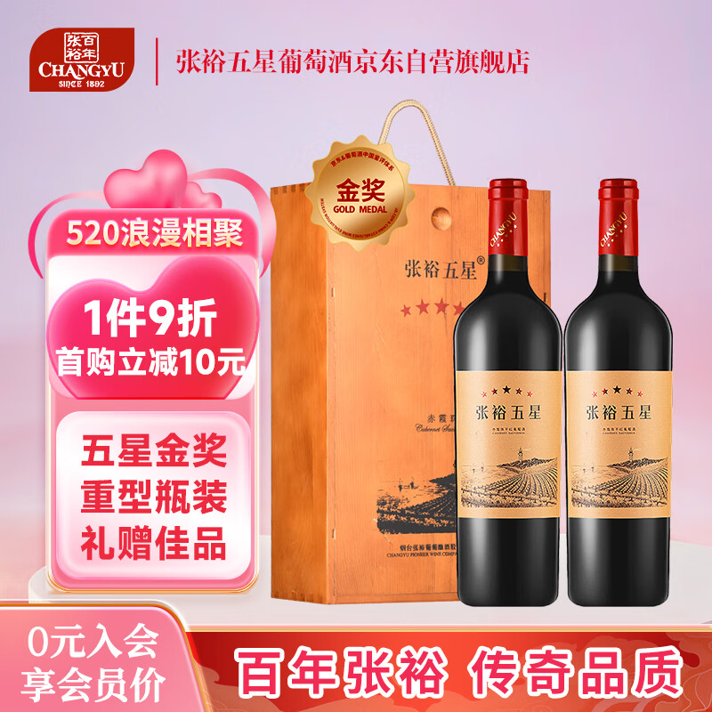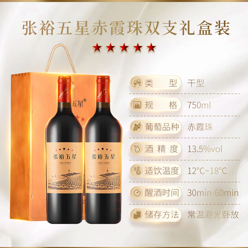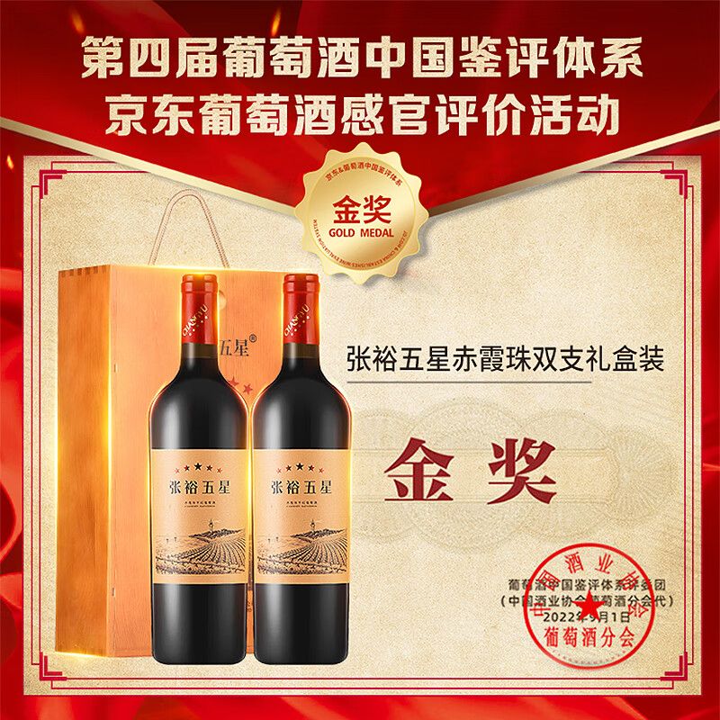 张裕(CHANGYU)五星赤霞珠干红葡萄酒 750ml*2瓶双支礼盒装 国产红酒价格:596.00元!