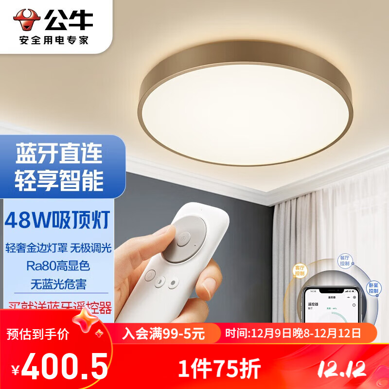 公牛(BULL)LED客厅灯智能蓝牙连接MX-B048X-CD卧室灯无极调光圆形48W价格:534.00元!