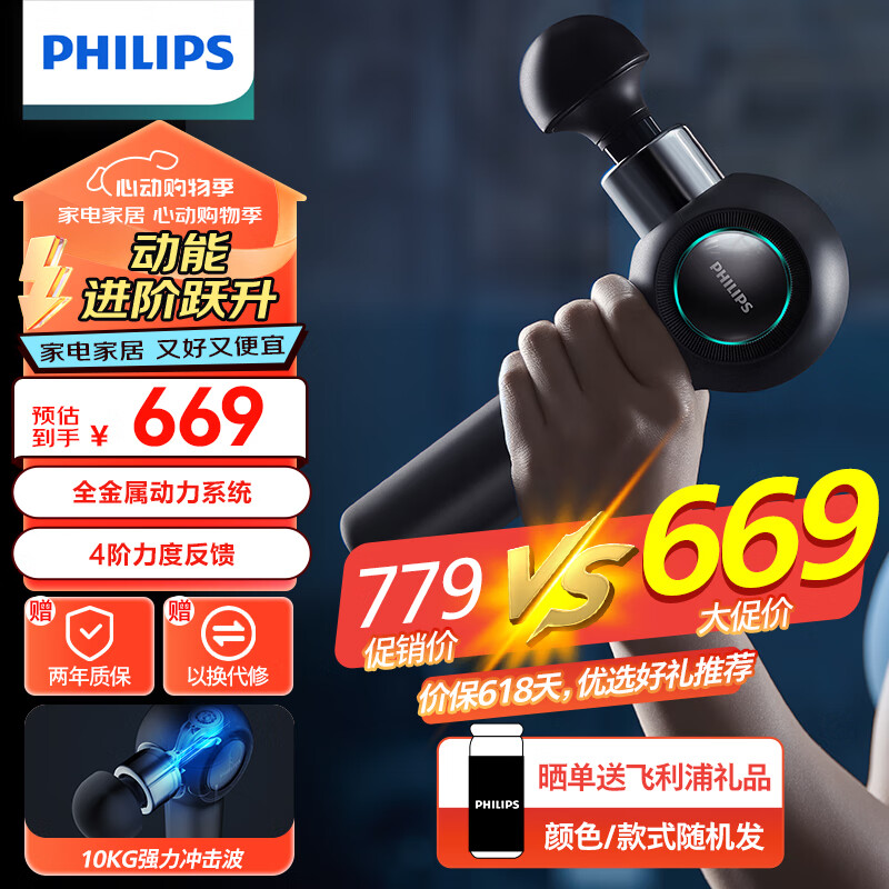 飞利浦(PHILIPS)筋膜枪专业级肌肉按摩器 运动健身推荐肌肉按摩仪放松颈肩腿部颈膜枪全身送礼节日礼物3201G价格:835.00元!