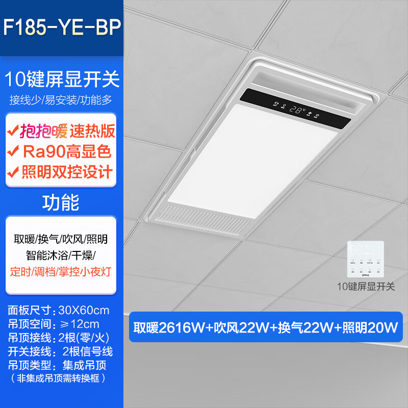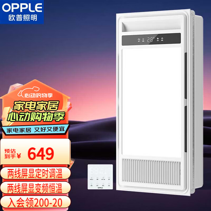 欧普(OPPLE)风暖浴霸灯照明排气一体集成吊顶浴室卫生间变频恒温暖风机F185-Y价格:649.00元!