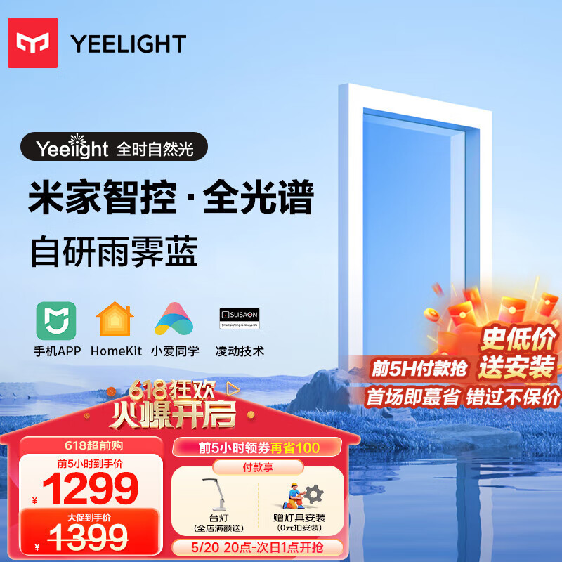 Yeelight易来led吸顶灯 客厅卧室餐厅灯米家智控 全光谱自然光青空灯G6价格:1799.00元!