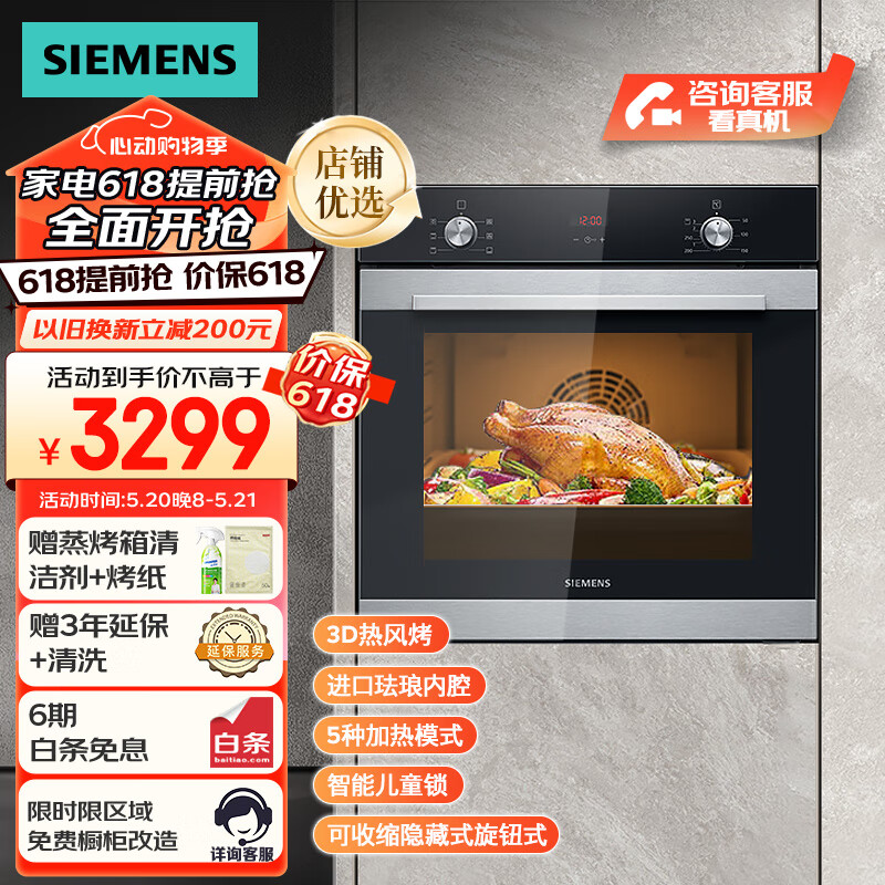 西门子(SIEMENS)欧洲原装进口嵌入式烤箱 智能家用大容量 5种专业模式烘烤 蒸烤箱系列产品HB313ABS0W高59.5CM价格:3299.00元!