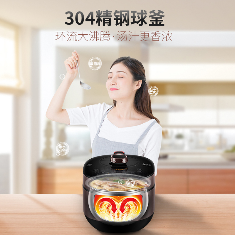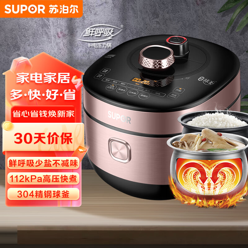 苏泊尔(SUPOR)鲜呼吸IH电锅5L家用智能预约112kpa煮饭煲汤触控面板自排气不锈钢球釜50HC35Q双胆高压锅3-6人价格:1999.00元!