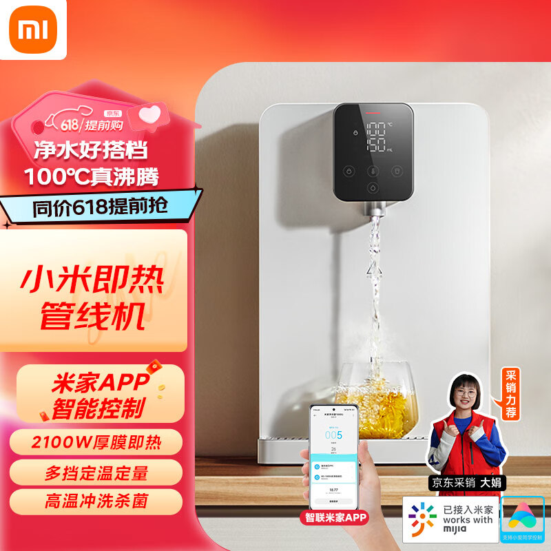 米家小米 家用净水器伴侣管线机 秒速加热直饮一体 100℃真沸腾 定量定温取水 壁挂式饮水机价格:1299.00元!