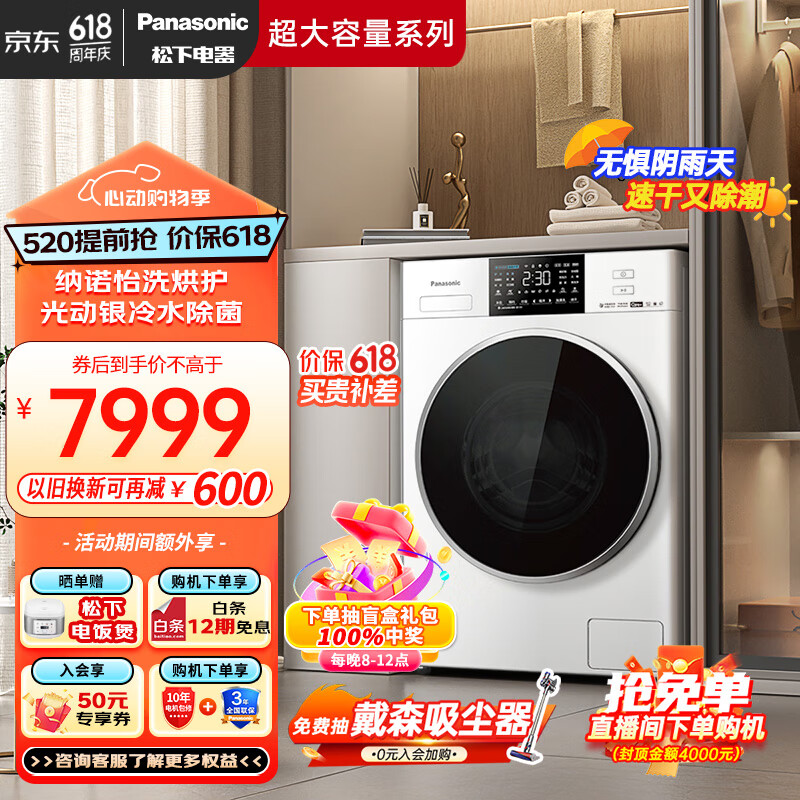 松下(Panasonic)滚筒洗衣机全自动洗烘一体12公斤大容量 纳诺怡护理 光动银除菌 水氧泡沫净 智能投放XQG120-ND2Z5价格:8799.00元!