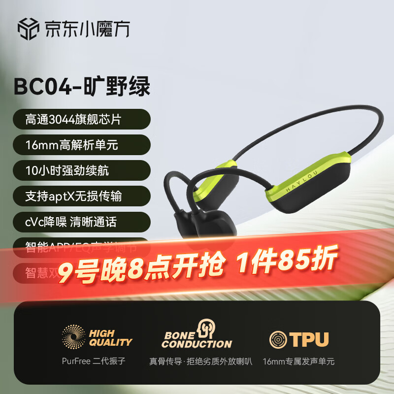 嘿喽(Haylou)BC04骨传导耳机 开放式蓝牙无线耳机 不入耳头戴式户外运动耳机 跑步骑行通话降噪耳机 旷野黑价格:281.00元!