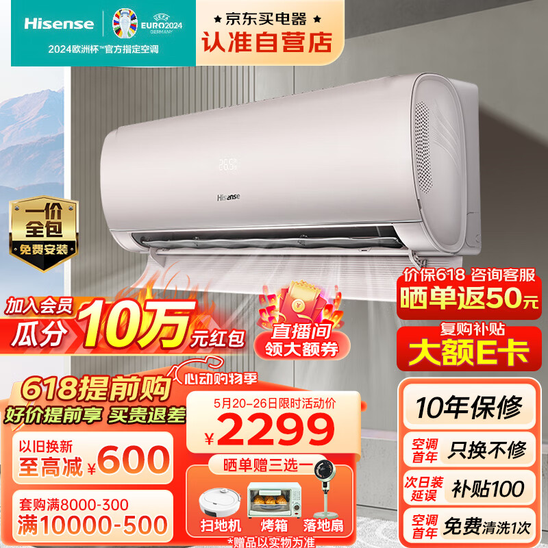 海信空调1.5匹挂机新一级能效免安装费大风量速冷暖防直吹5A除菌舱壁挂空调KFR-35GW/S550-X1以旧换新价格:2299.00元!